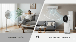 羽なし扇風機で後悔する前に!ダイソン等のメリットだけでなく、「うるさい?」「電気代は?」といった5つのデメリットも正直に解説。安全性やデザイン性を重視するあなたに本当に合うのか、購入前にご確認ください。